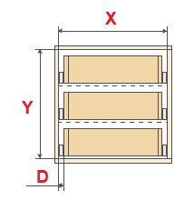 Dimensiun di paré davaant e laterai di cassett di mubilia.