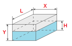 Program-la pou kalkil volim likid dan enn resipian rektang, volim total ek volim lib, ek bann sirfas.
