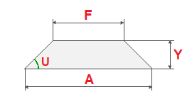 रेखाचित्रेषु च्छेदितपिरामिडस्य प्रतिमानस्य कृते व्यक्तिगतभागानाम् आयामाः दर्शिताः सन्ति ।